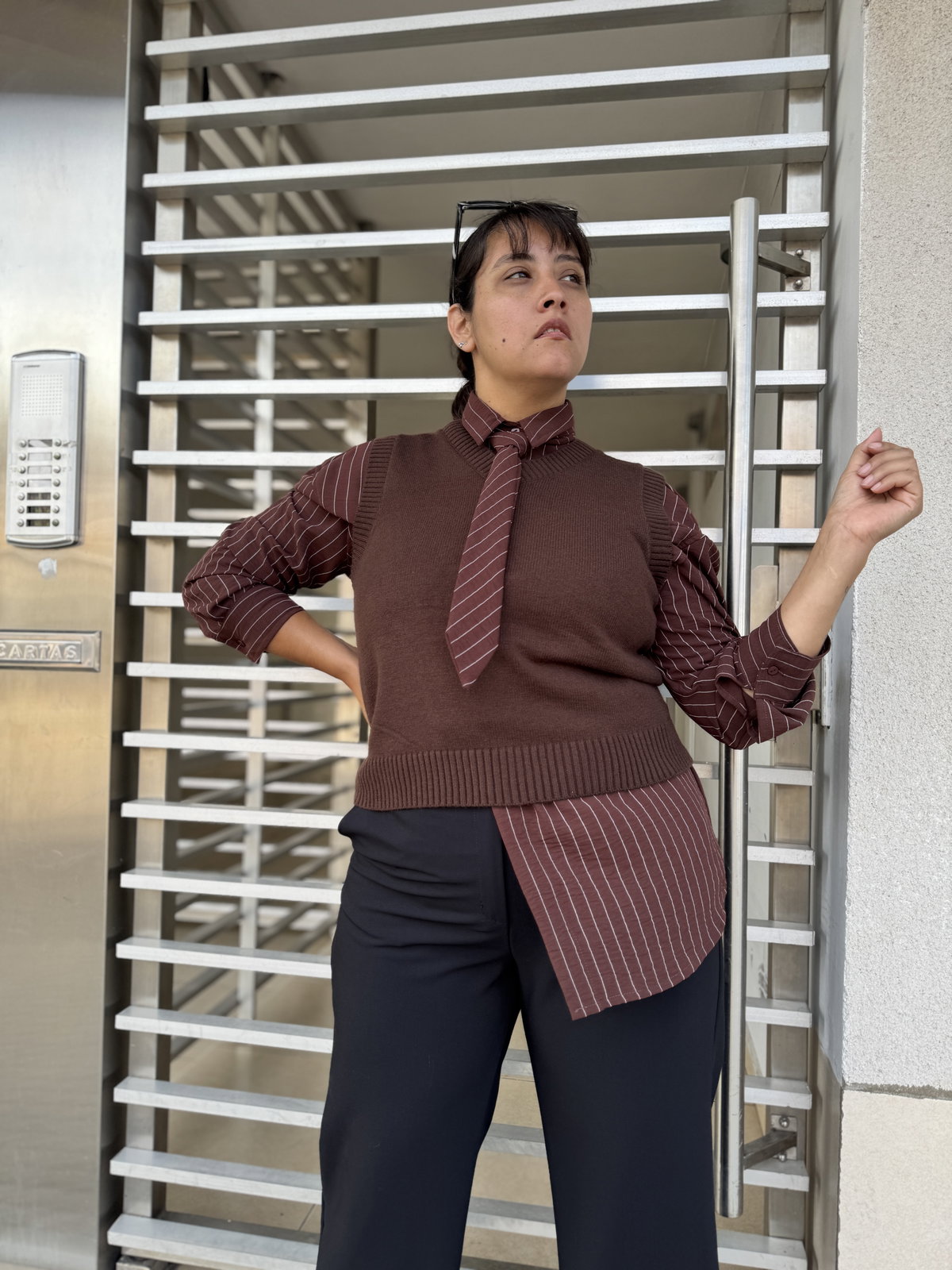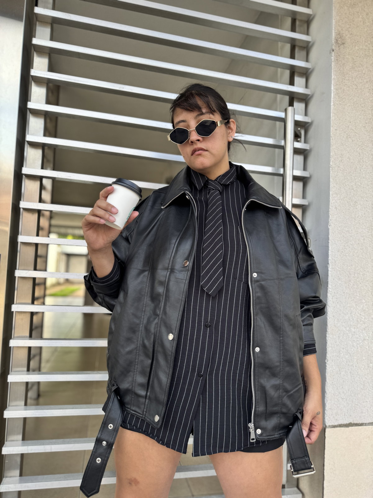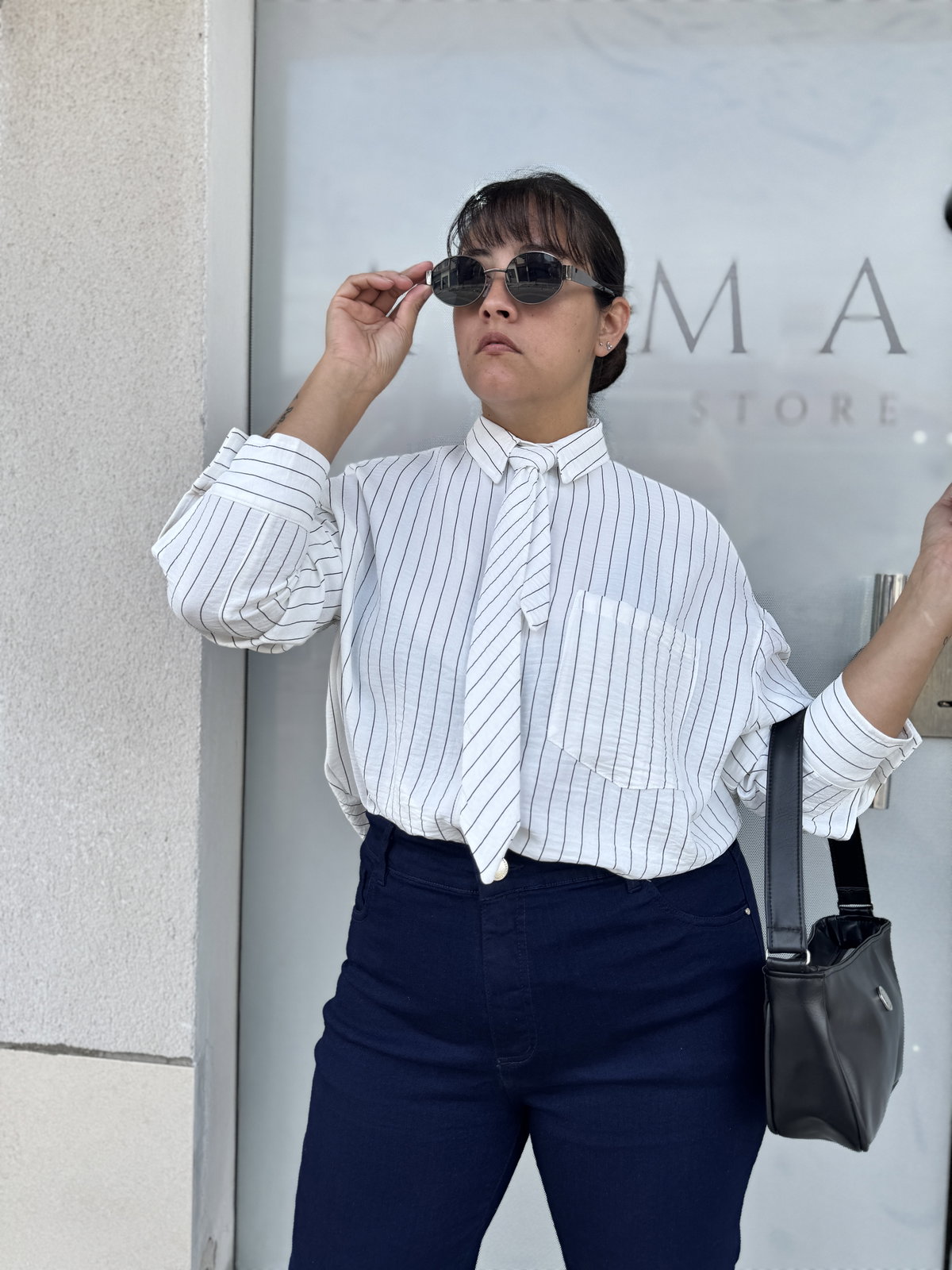 Camisa rayada con corbata, un clásico reinventado: cómoda, versátil y con mucha presencia. Perfecta para looks urbanos o más arreglados.Sumale una campera y estás lista.